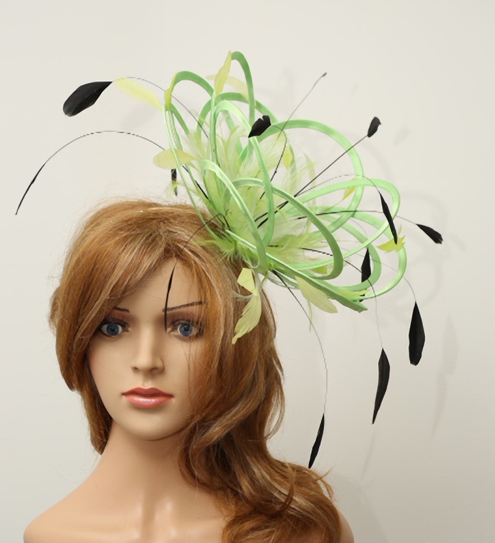 Lime Green & Black Medium Satin and Feather Fascinator hat – Martha