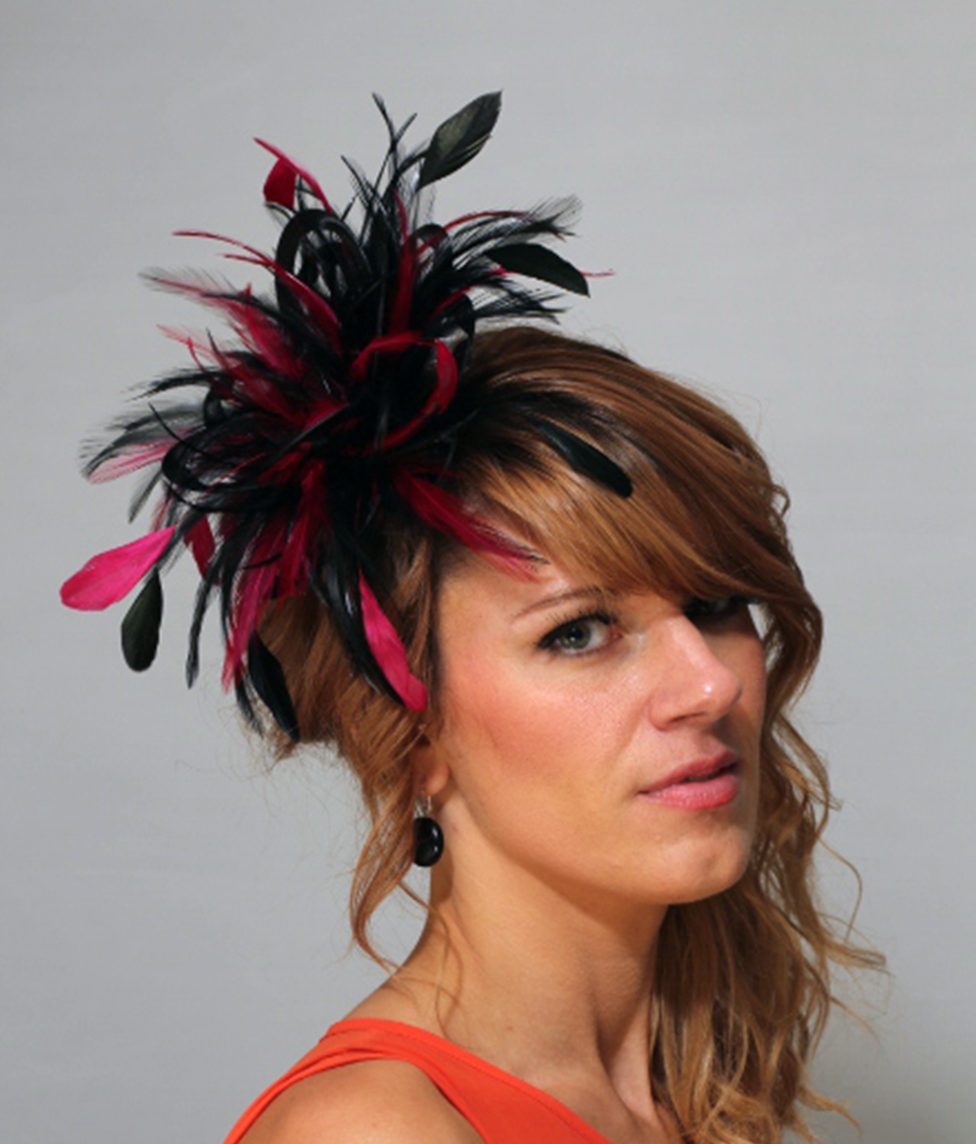 Black and Hot Pink Magenta Satin Feather Small Fascinator hat – Abbie