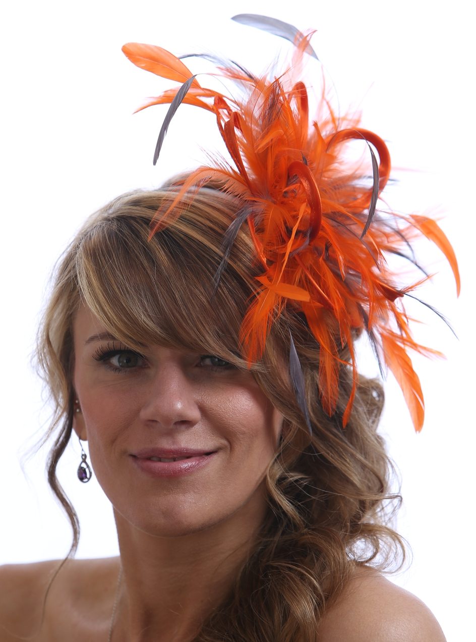 Orange and Pewter Grey Satin Feather Small Fascinator hat – Abbie