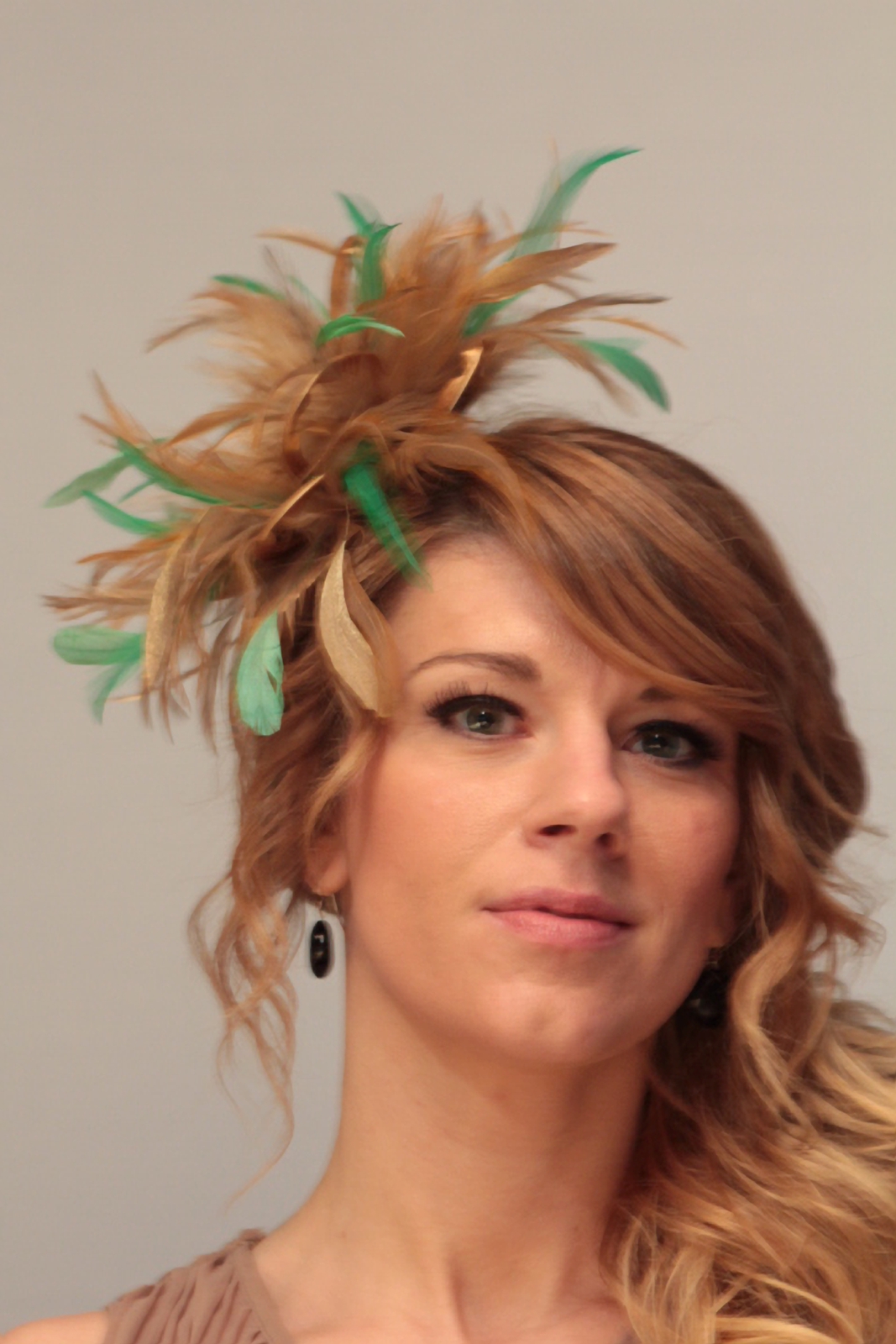 Gold and Emerald Green Satin Feather Small Fascinator hat – Abbie