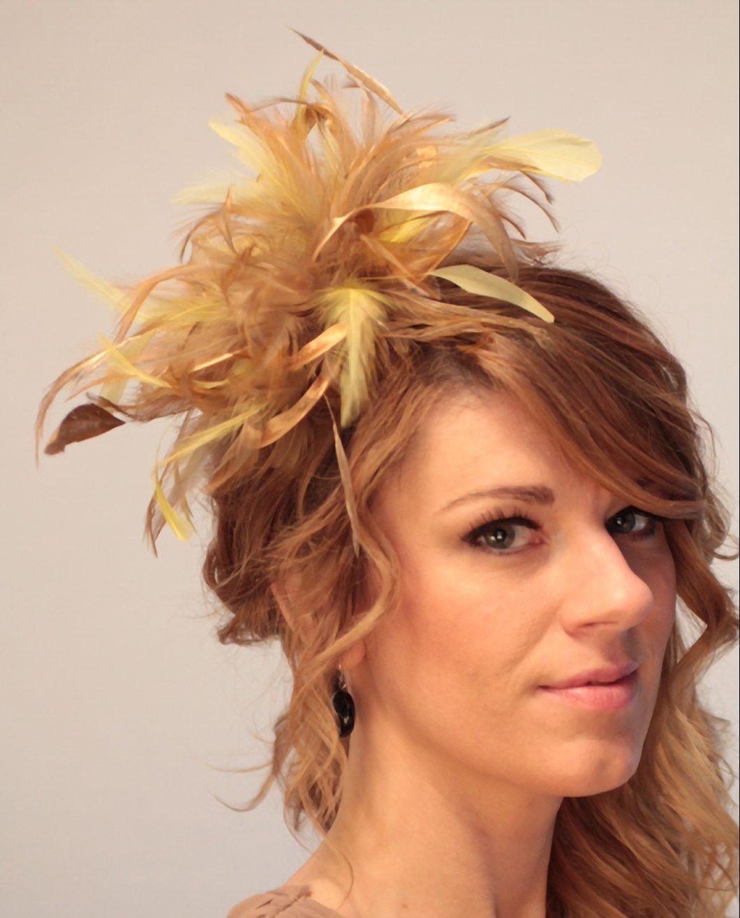 Gold and Yellow Satin Feather Small Fascinator hat – Abbie