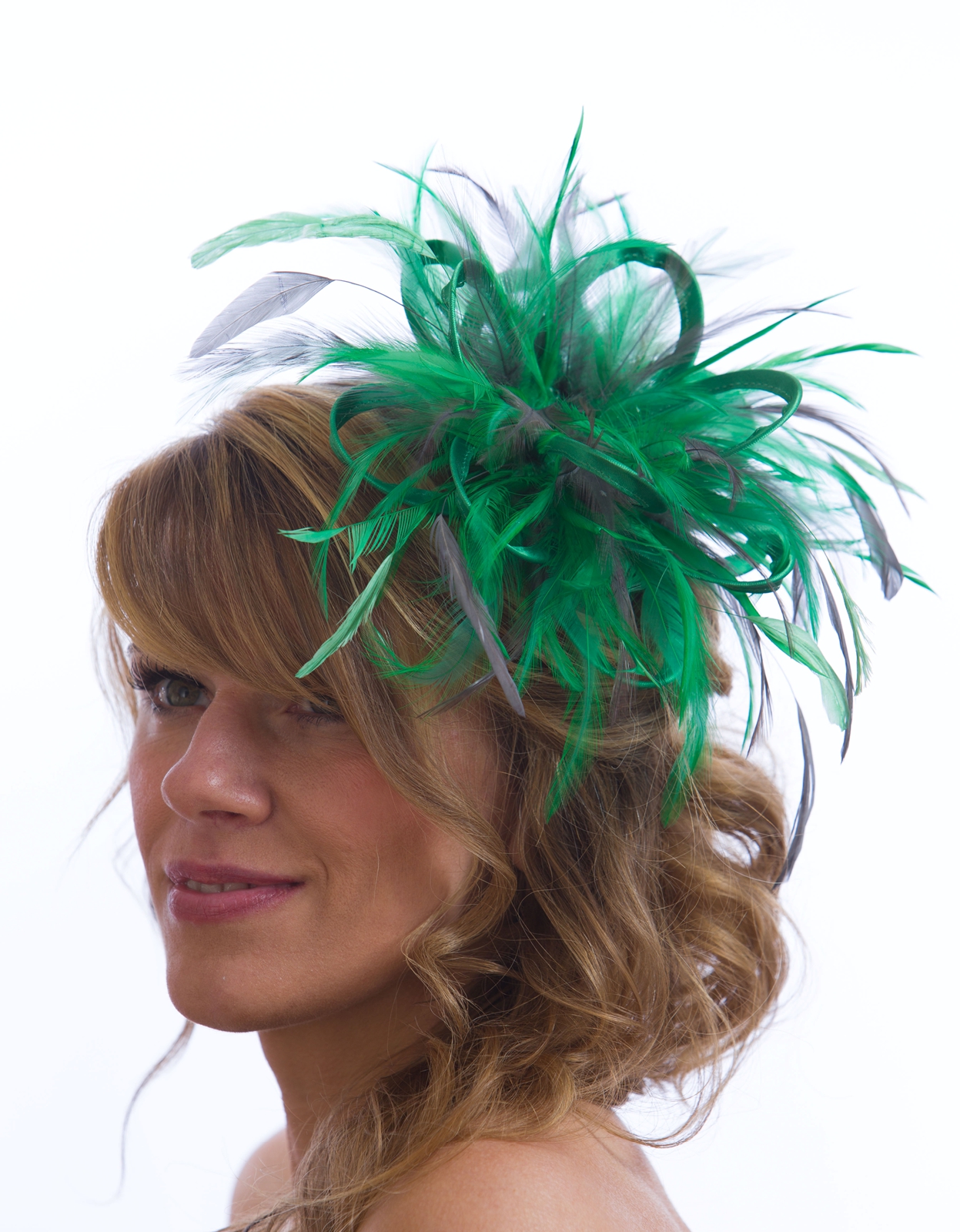 Emerald Green and Pewter Grey Feather Small Fascinator hat – Abbie