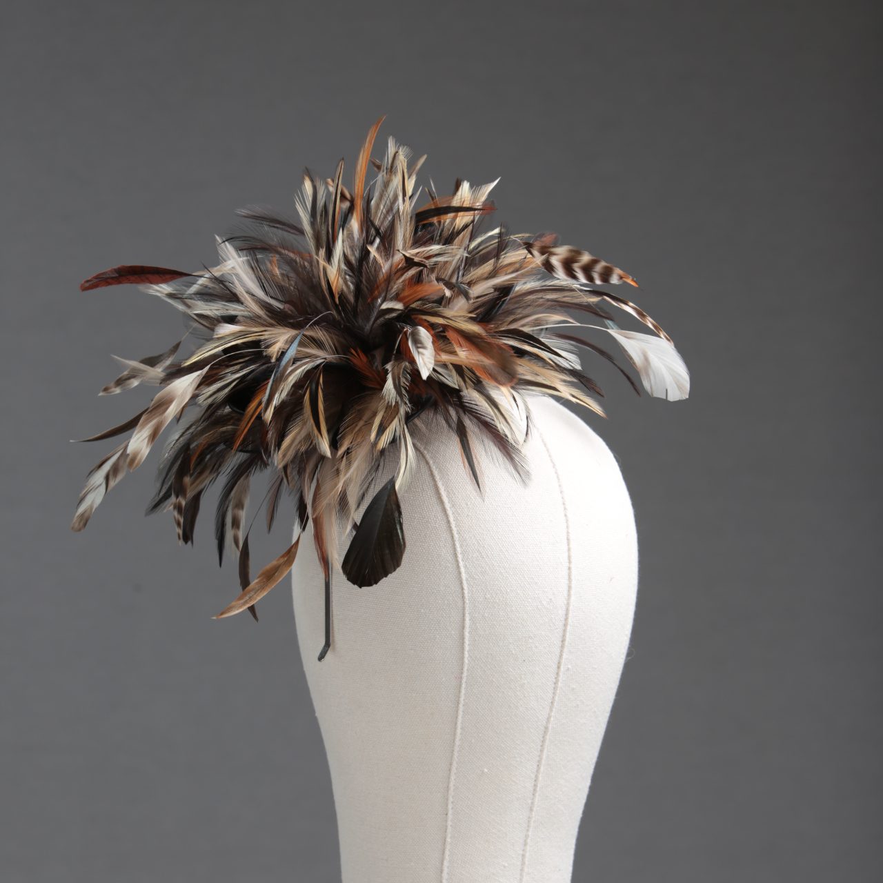 black satin loops, animal print feathers fascinator hat