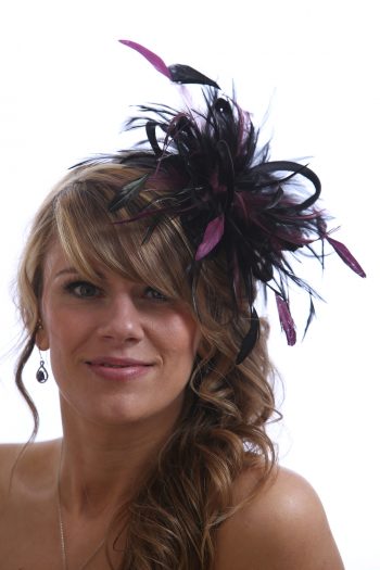 Black and Burgundy Wine Satin Feather Small Fascinator hat – Abbie
