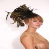 I have also added handcut feathers and sprayed black long coque tails which have been sprayed in a fine gold mist. Each spray of long feathers is wired so that you can wear as shown or make the item higher or lower.