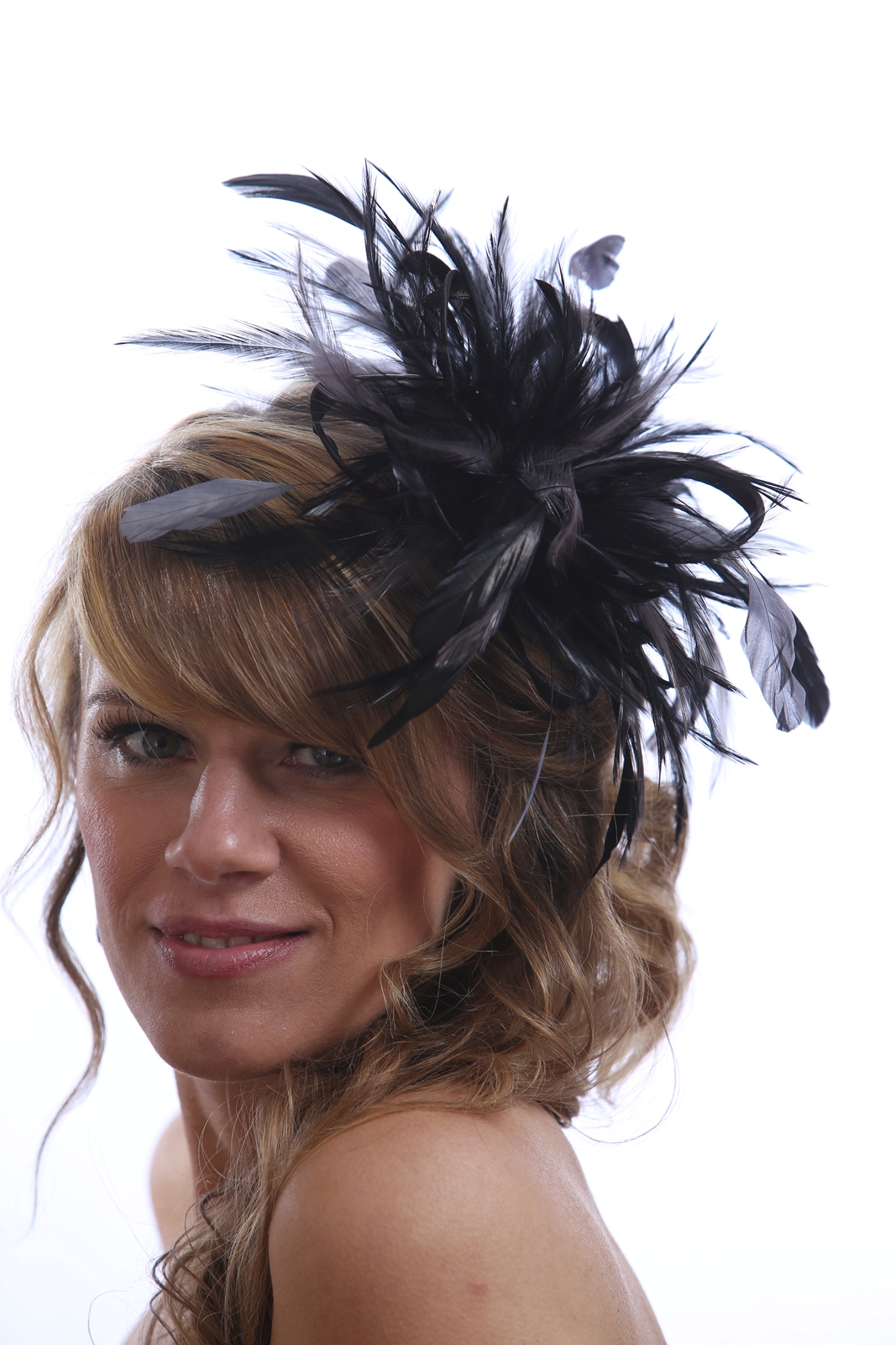Black and Pewter Grey Satin Feather Small Fascinator hat – Abbie