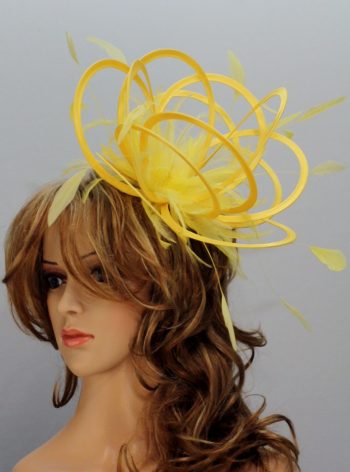 Bright Yellow Satin Feather Medium Fascinator hat – Martha