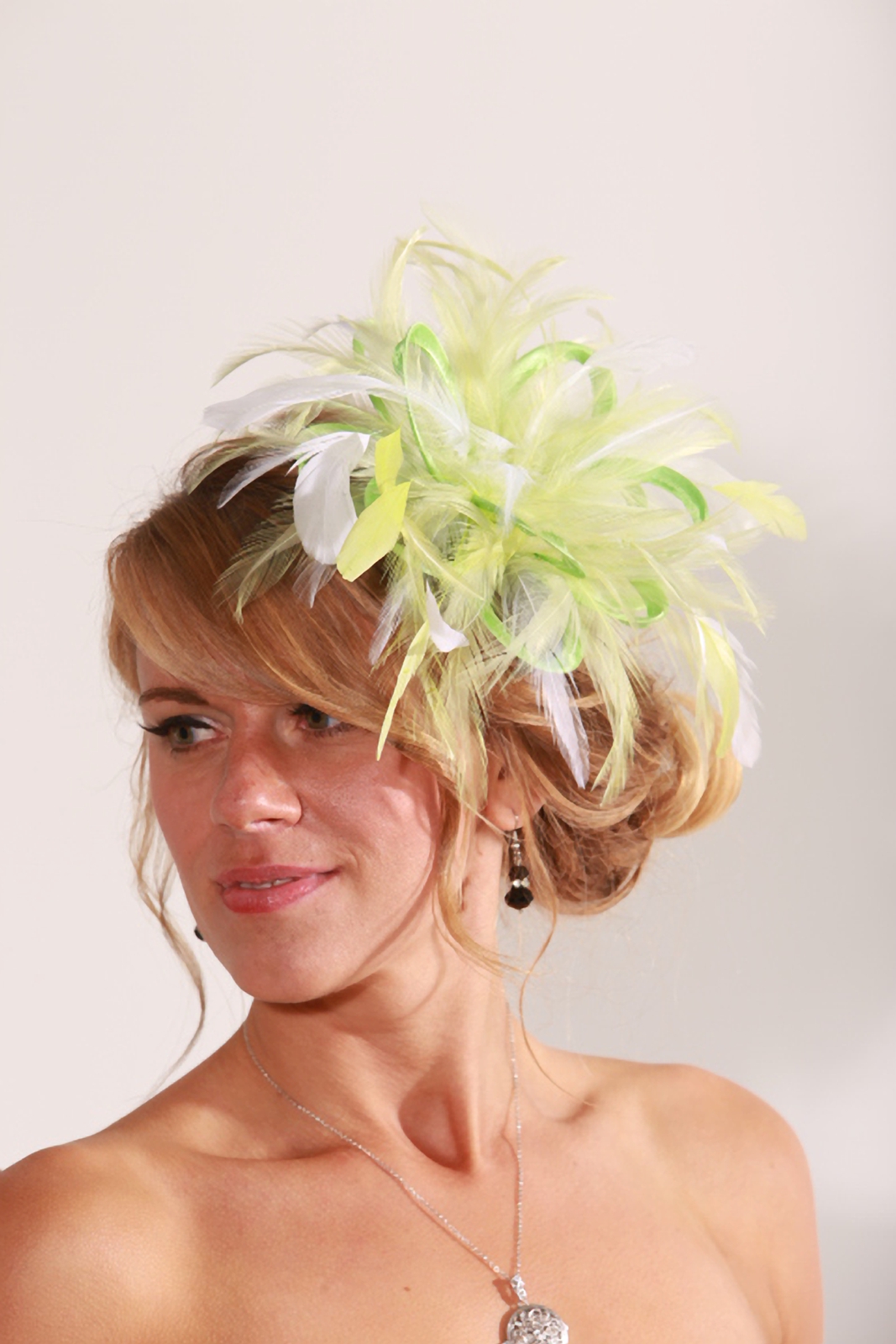 Lime Green & Ivory Feather Small Fascinator hat – Abbie