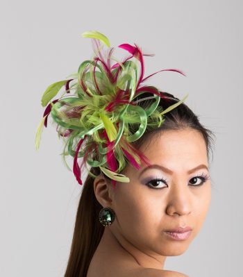Lime Green & Magenta Hot Pink Feather Small Fascinator hat – Abbie