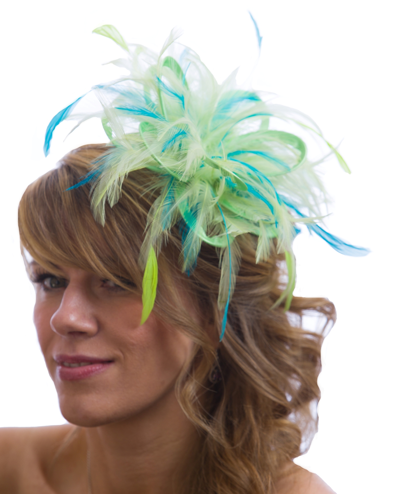 Lime Green & Turquoise Feather Small Fascinator hat – Abbie