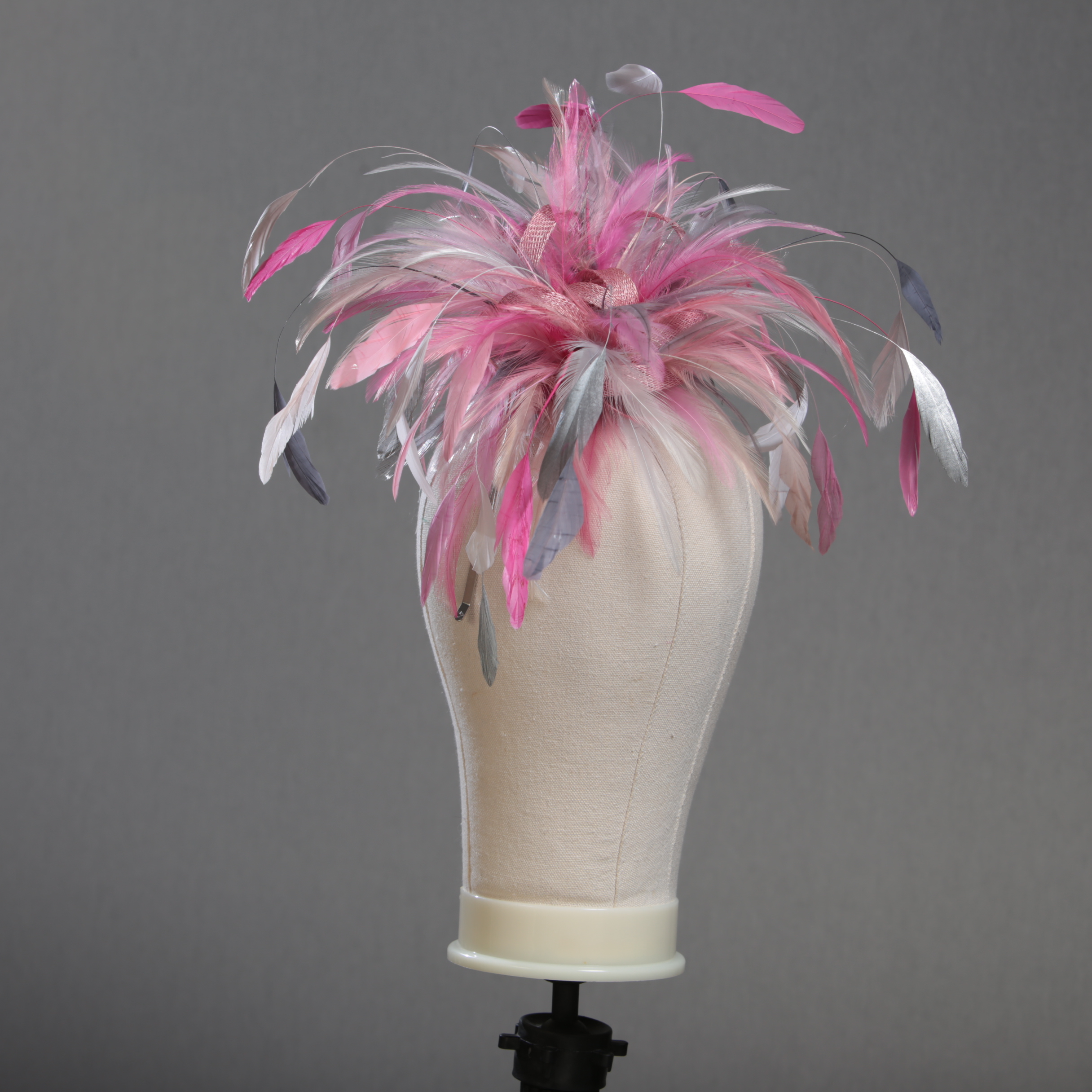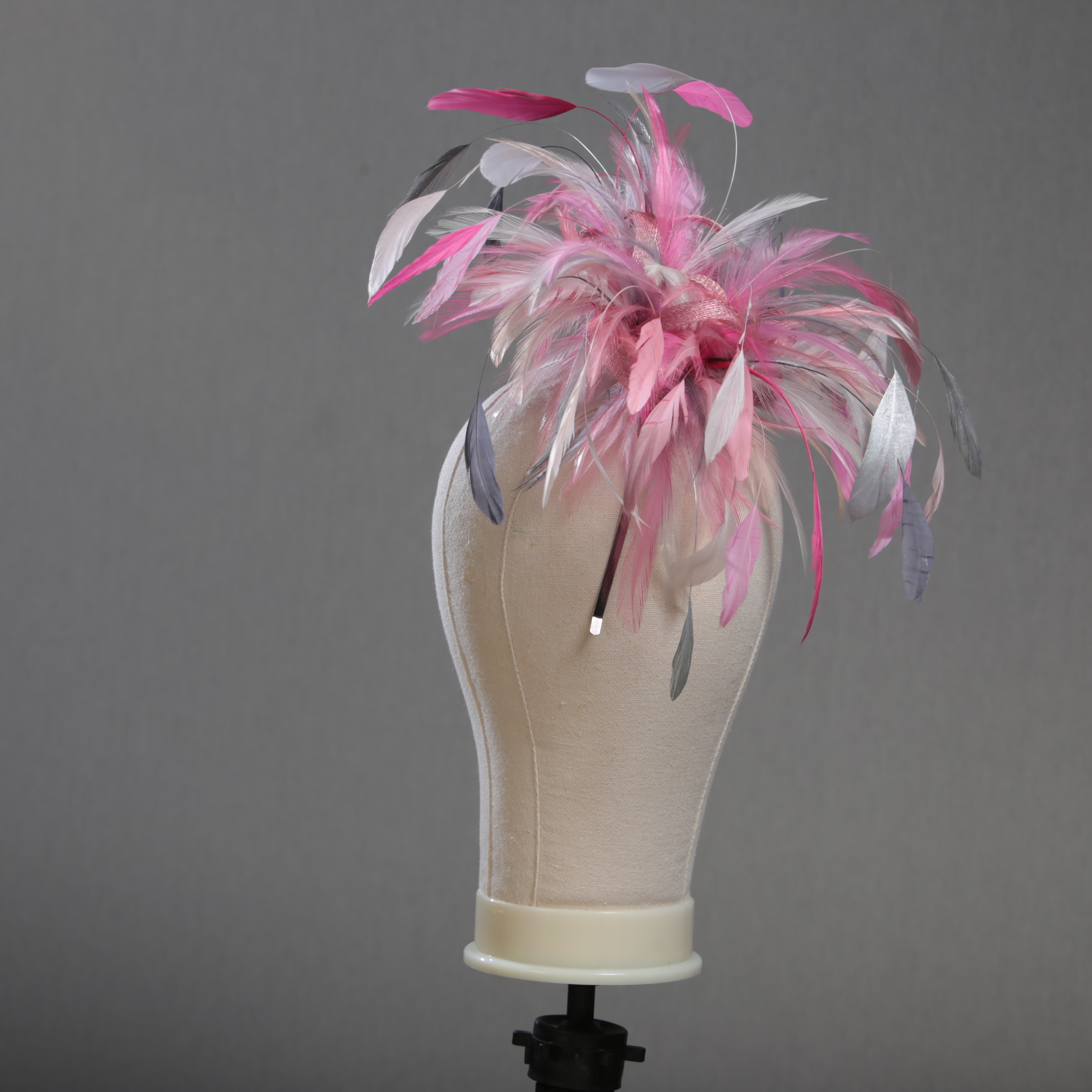 Lipstick Candy Pink, Oyster, Raspberry, Silver, Pewter Fascinator Hat