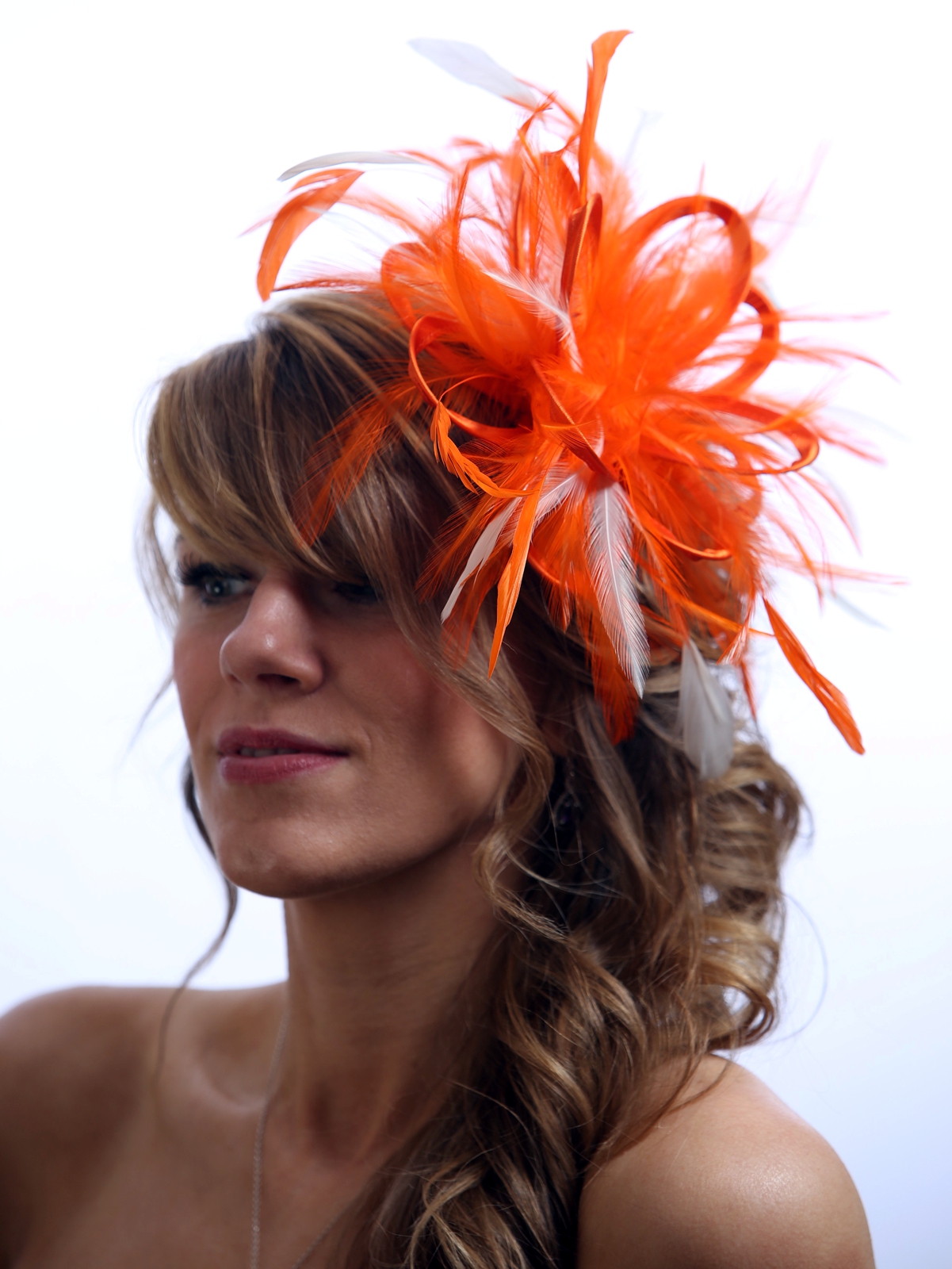 Orange and White Satin Feather Small Fascinator hat – Abbie