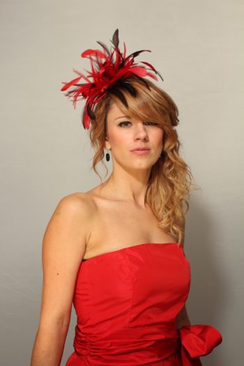 Red and Brown Satin Feather Small Fascinator hat – Abbie