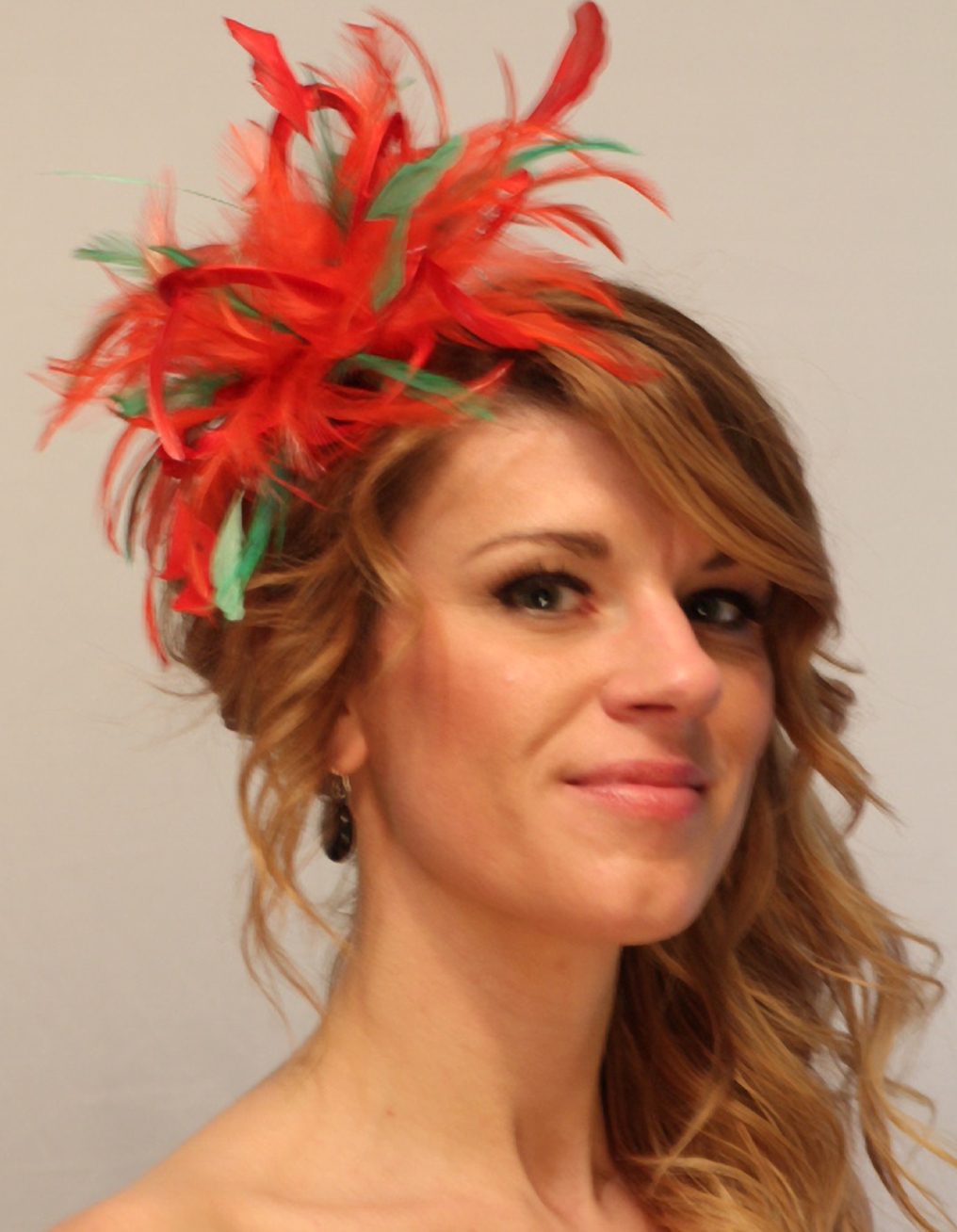 Red and Emerald Green Satin Feather Small Fascinator hat – Abbie