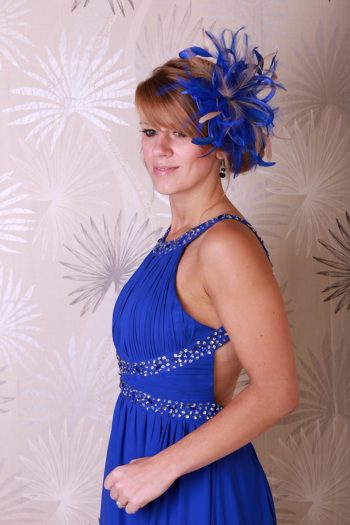 Royal Blue Satin and Feathers | Taupe Nude Highlight Feather Small Fascinator Hat | Abbie
