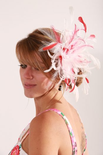 Small Ivory Satin Fascinator hat with Red feathers – Abbie